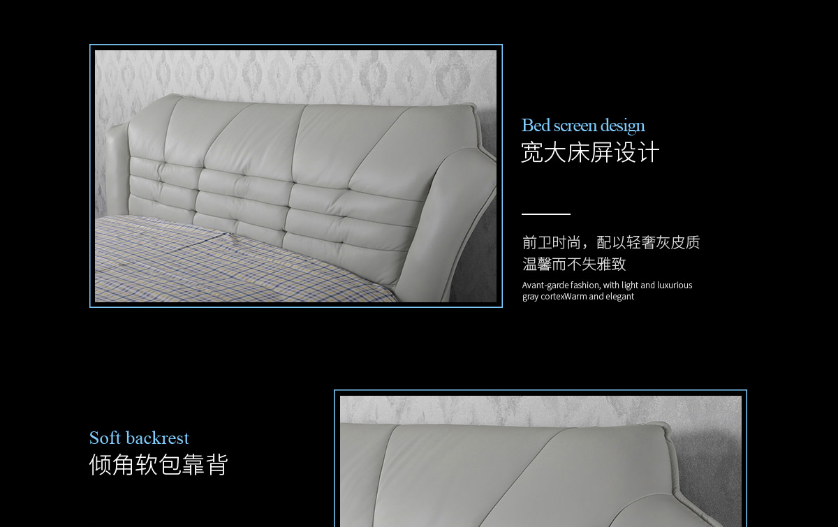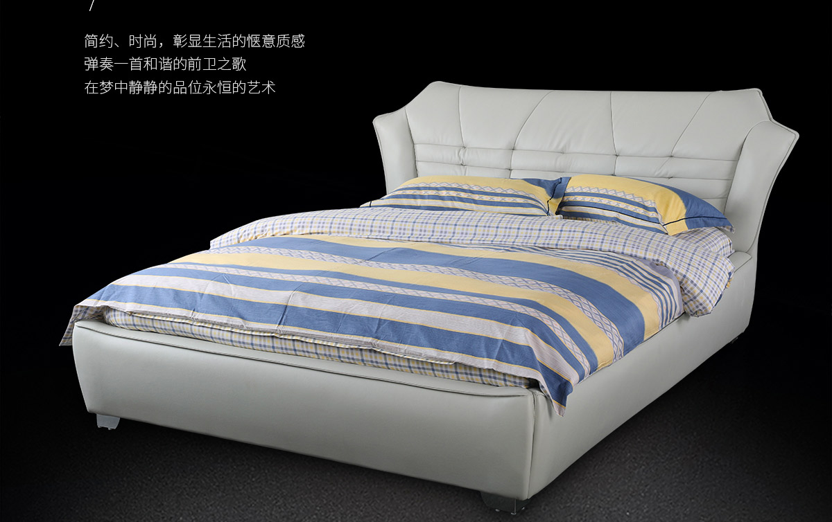 真皮床双人主卧室软包床C8096