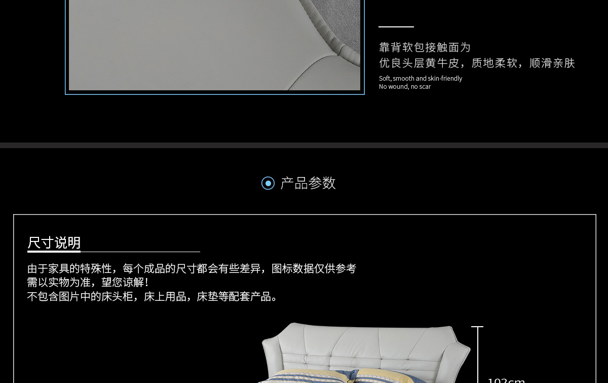 靠背材质:黄牛头层牛皮靠背填充物:高密度环保定型回弹海绵