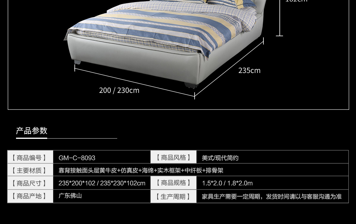 名称:双人床1.8米主卧皮床8093