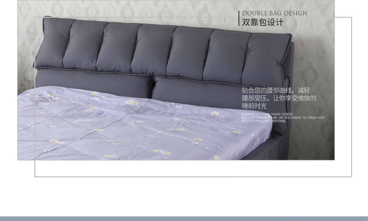 靠背材质:优质棉布布艺 靠背填充物:高密度环保定型回弹海绵