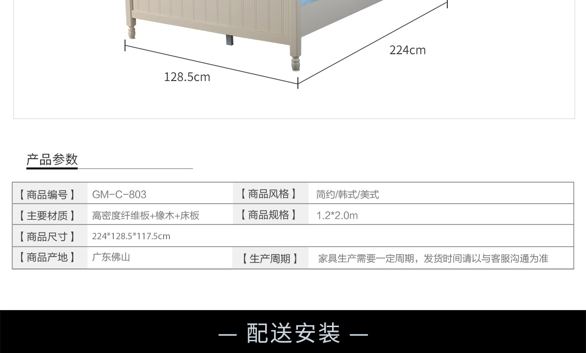 名称:卧室简约韩式田园浪漫板式床803